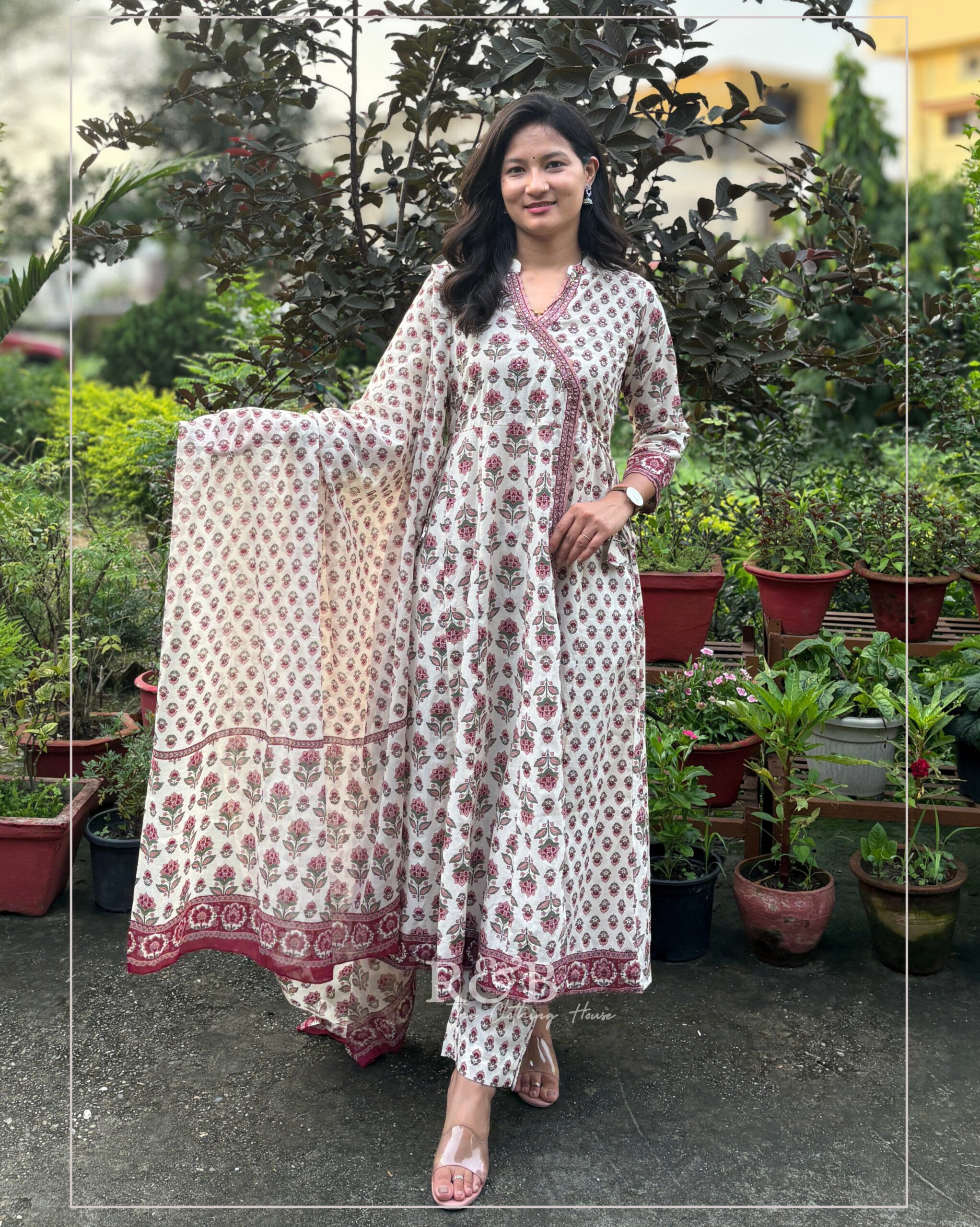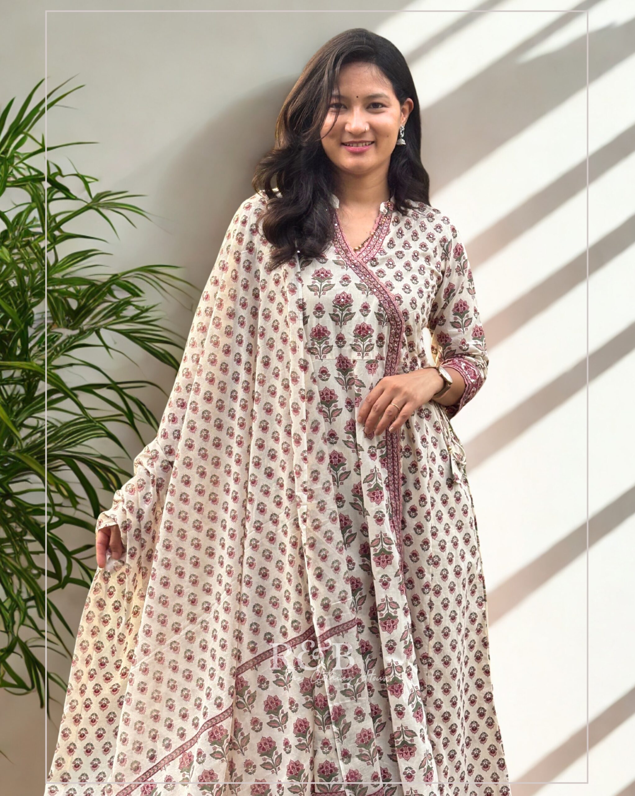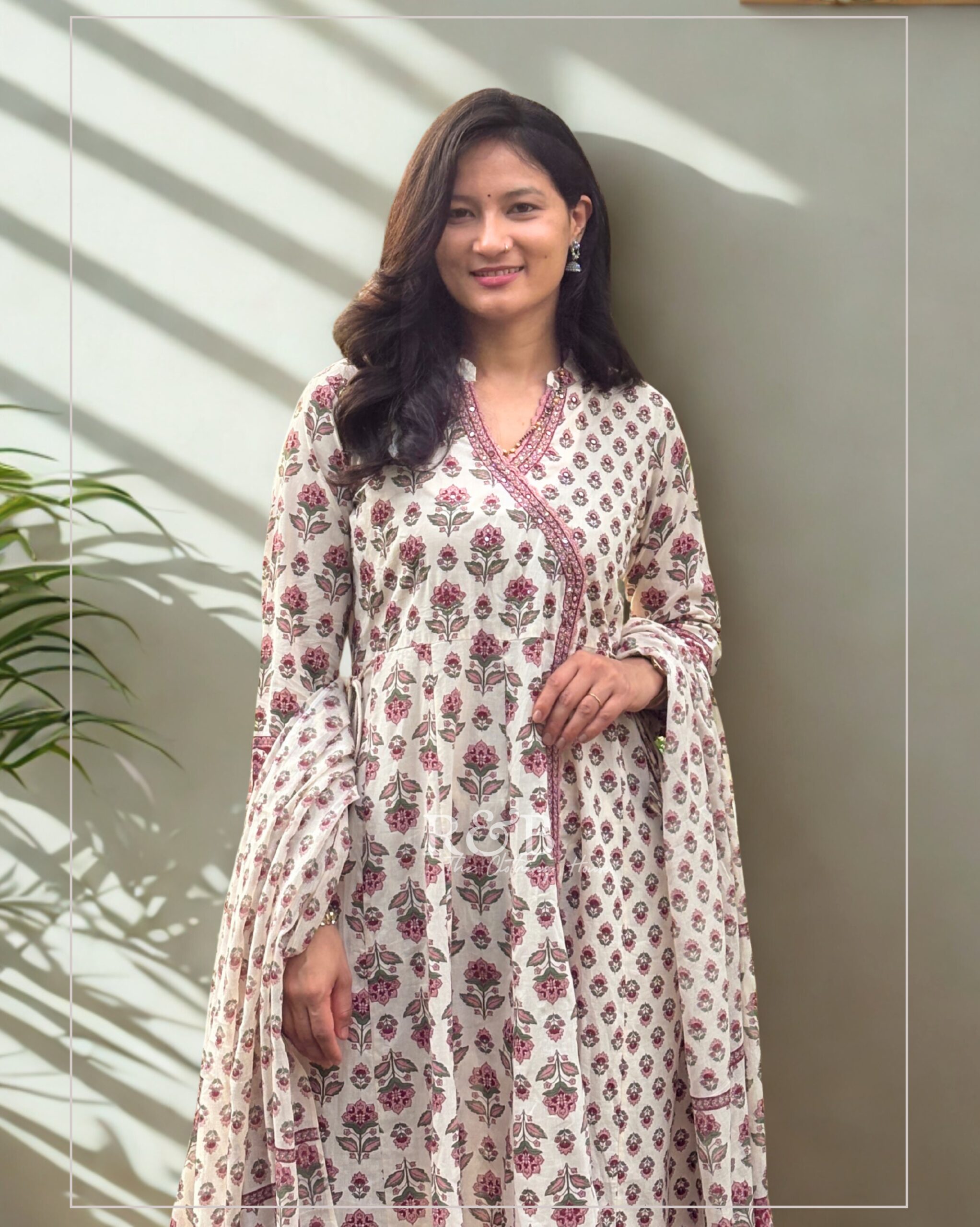+ Free ShippingA printed cotton angrakha set crafted for comfort and effortless style, perfect for daily wear and casual occasions, paired with a matching printed cotton pant and dupatta.
