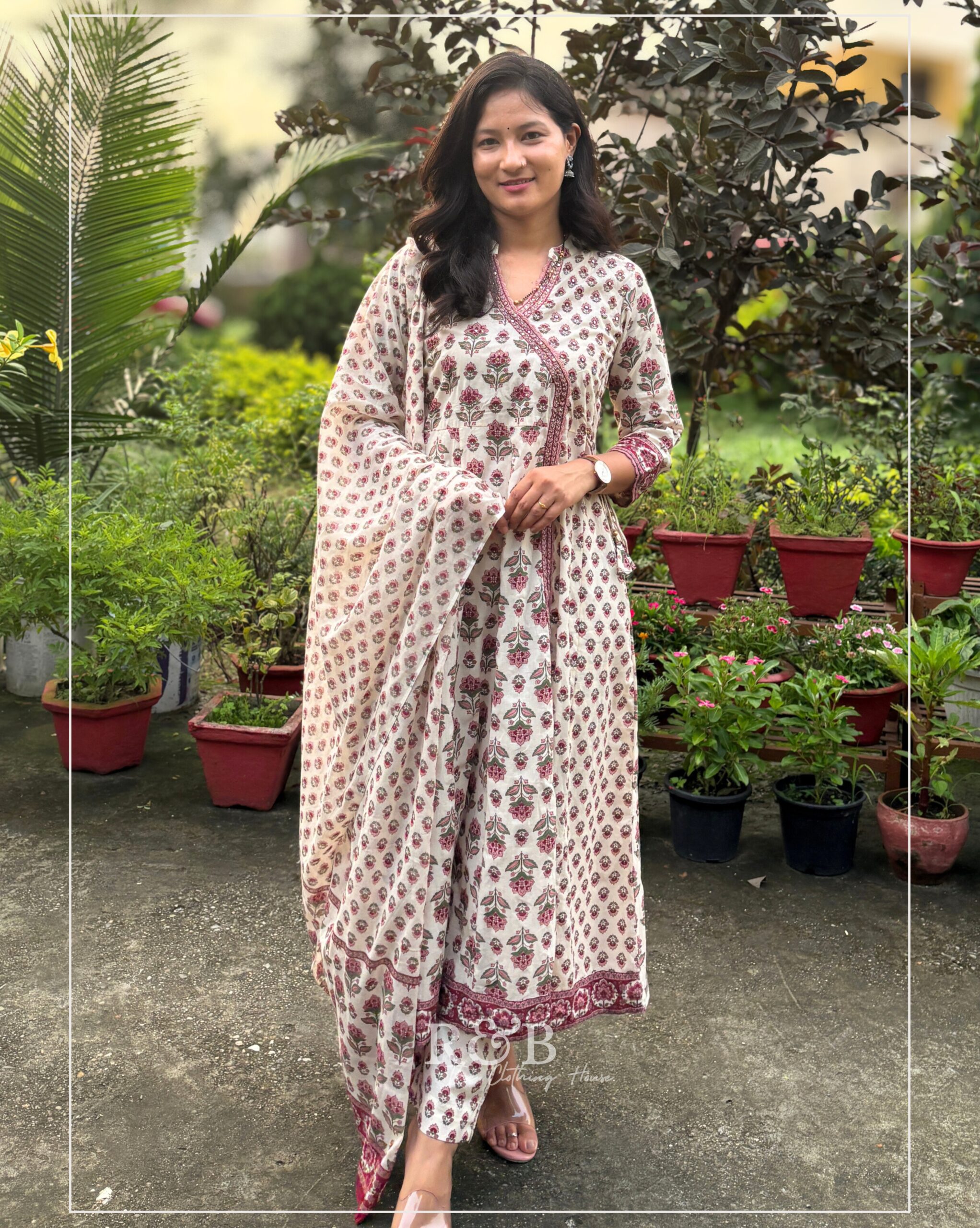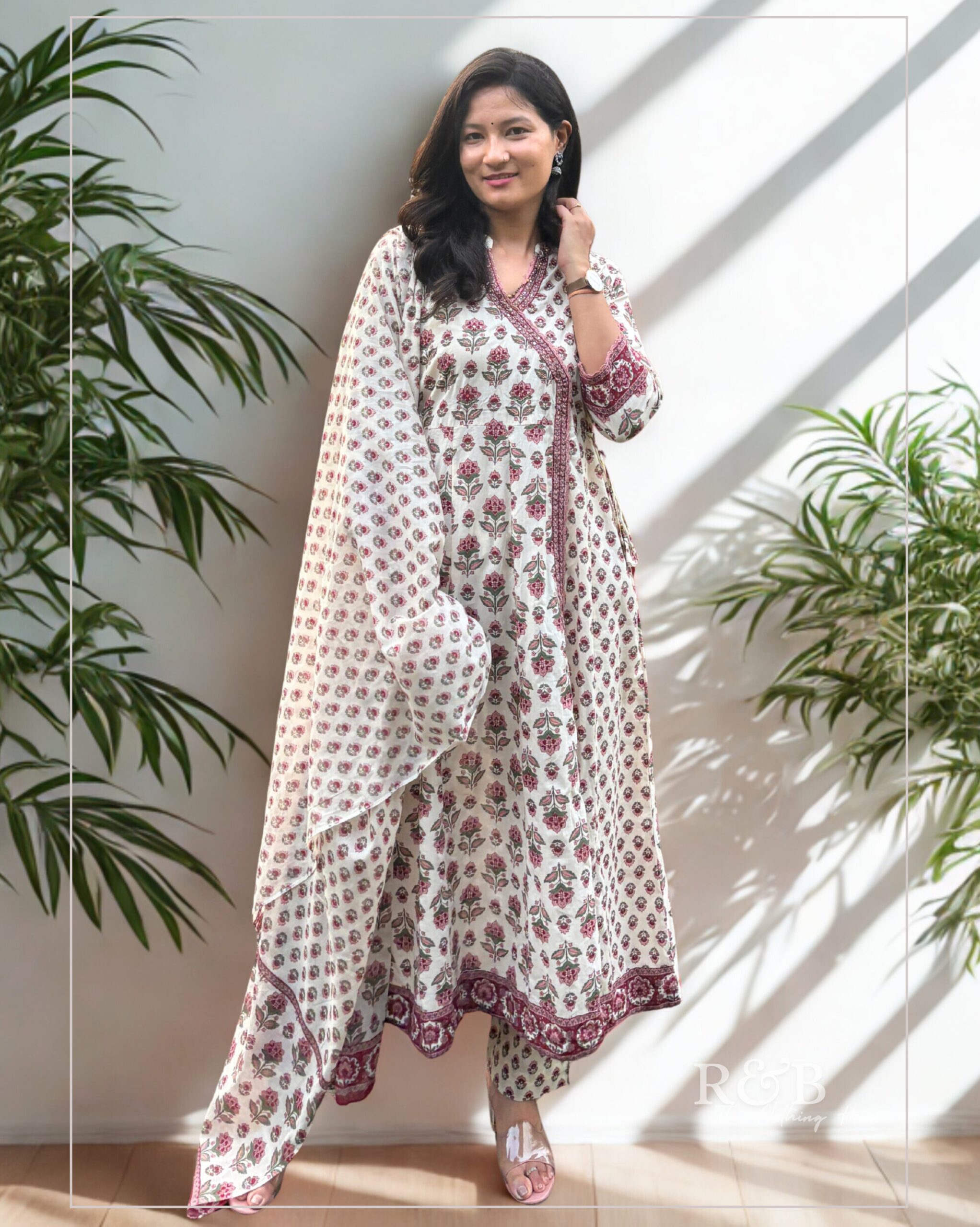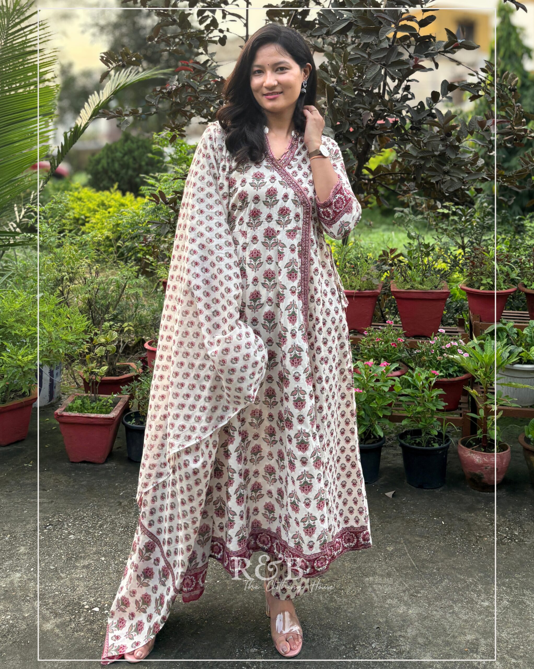 + Free ShippingA printed cotton angrakha set crafted for comfort and effortless style, perfect for daily wear and casual occasions, paired with a matching printed cotton pant and dupatta.