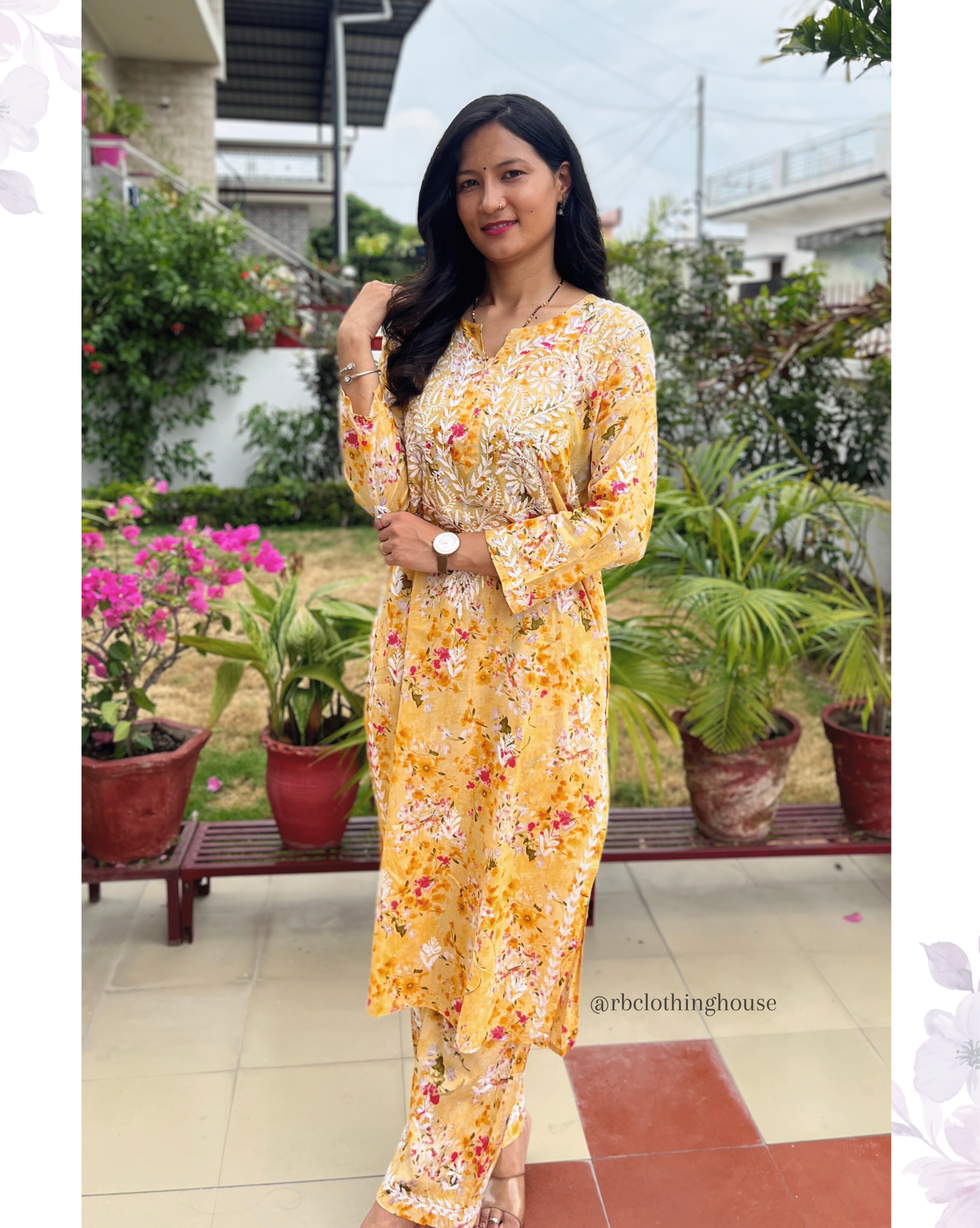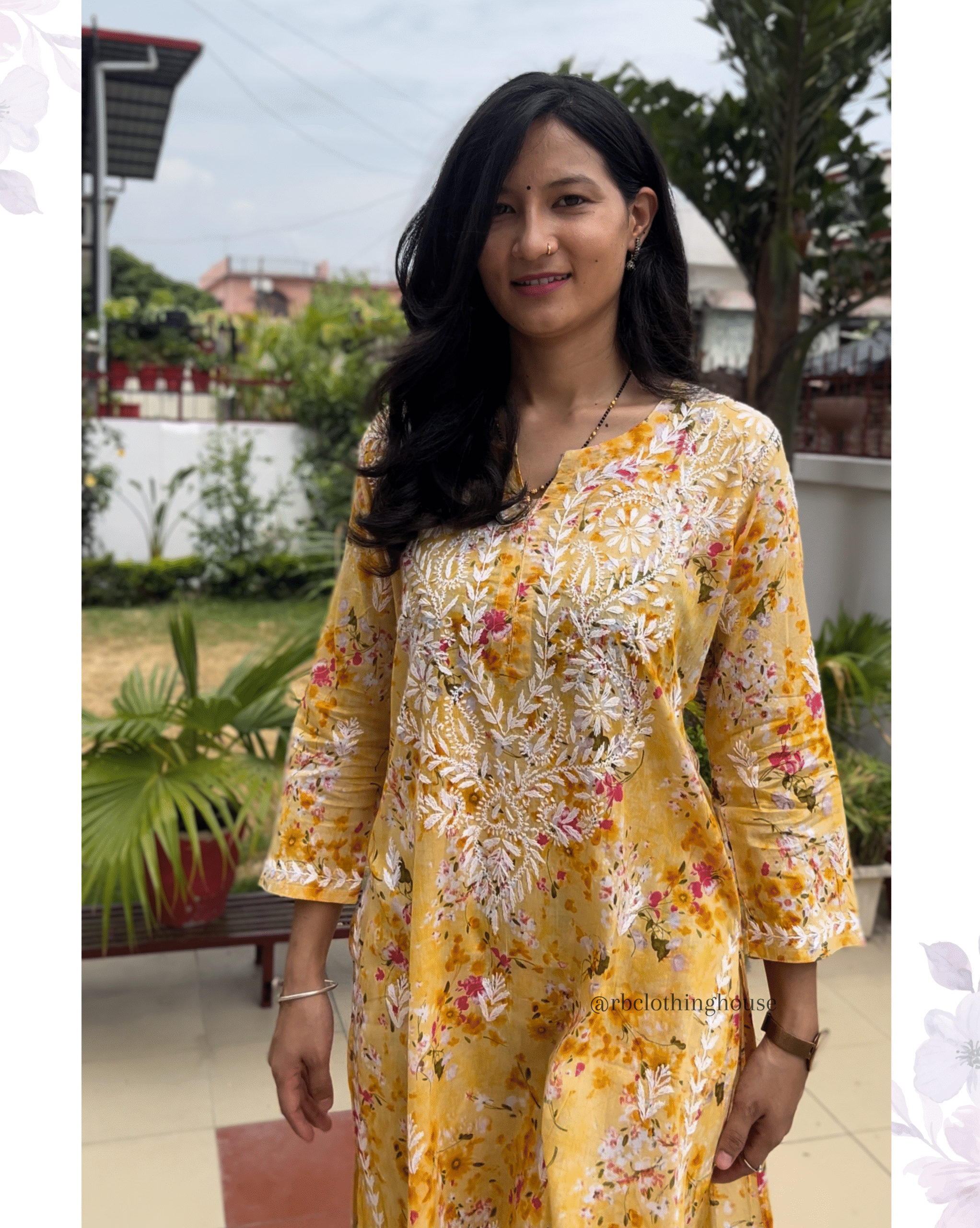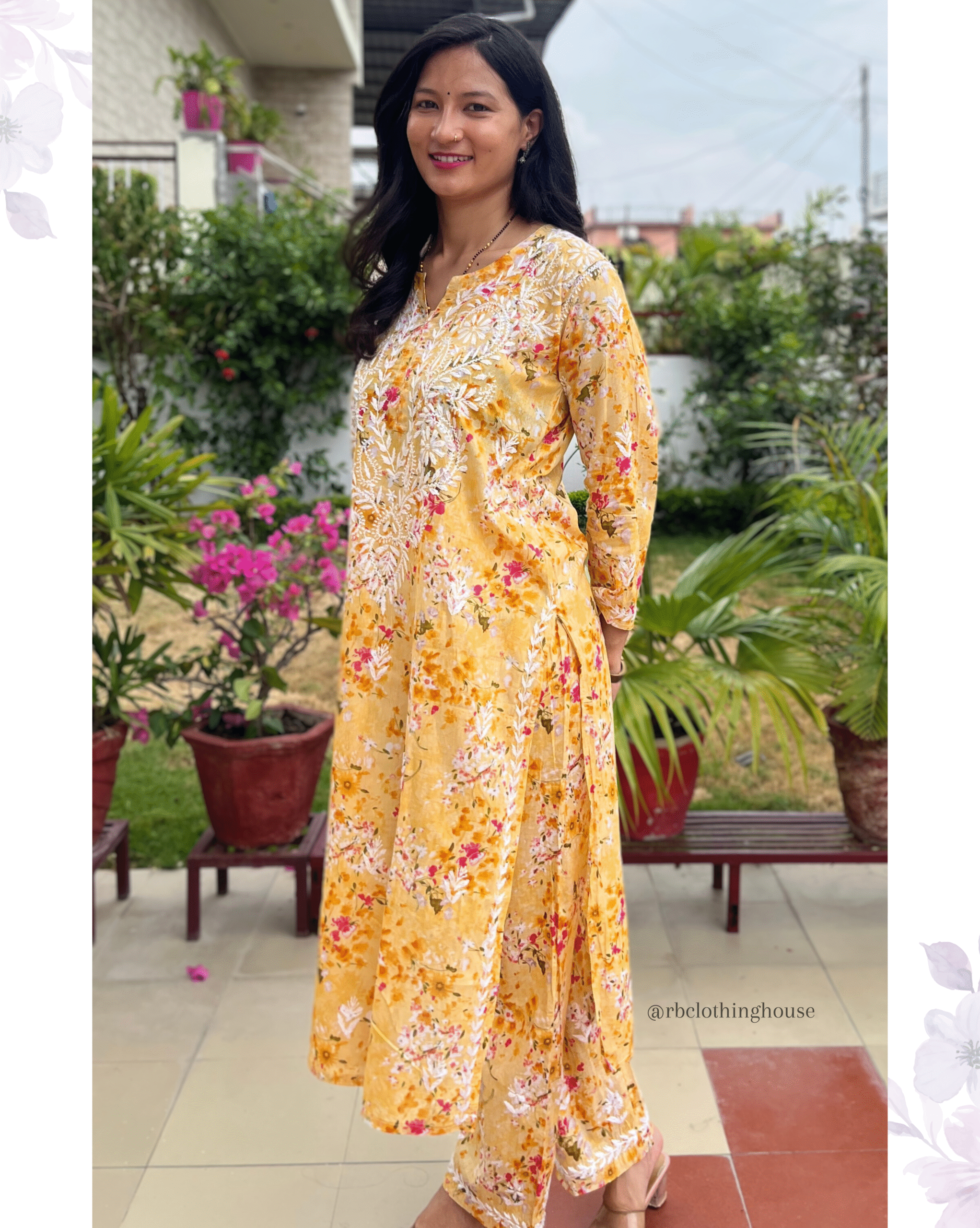 Super comfy printed mul cotton kurta pant set, with hand embroidery. Essential piece for office wear/casual wear.