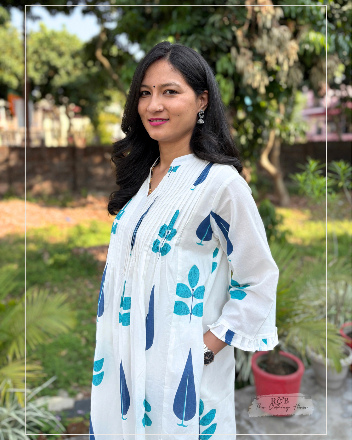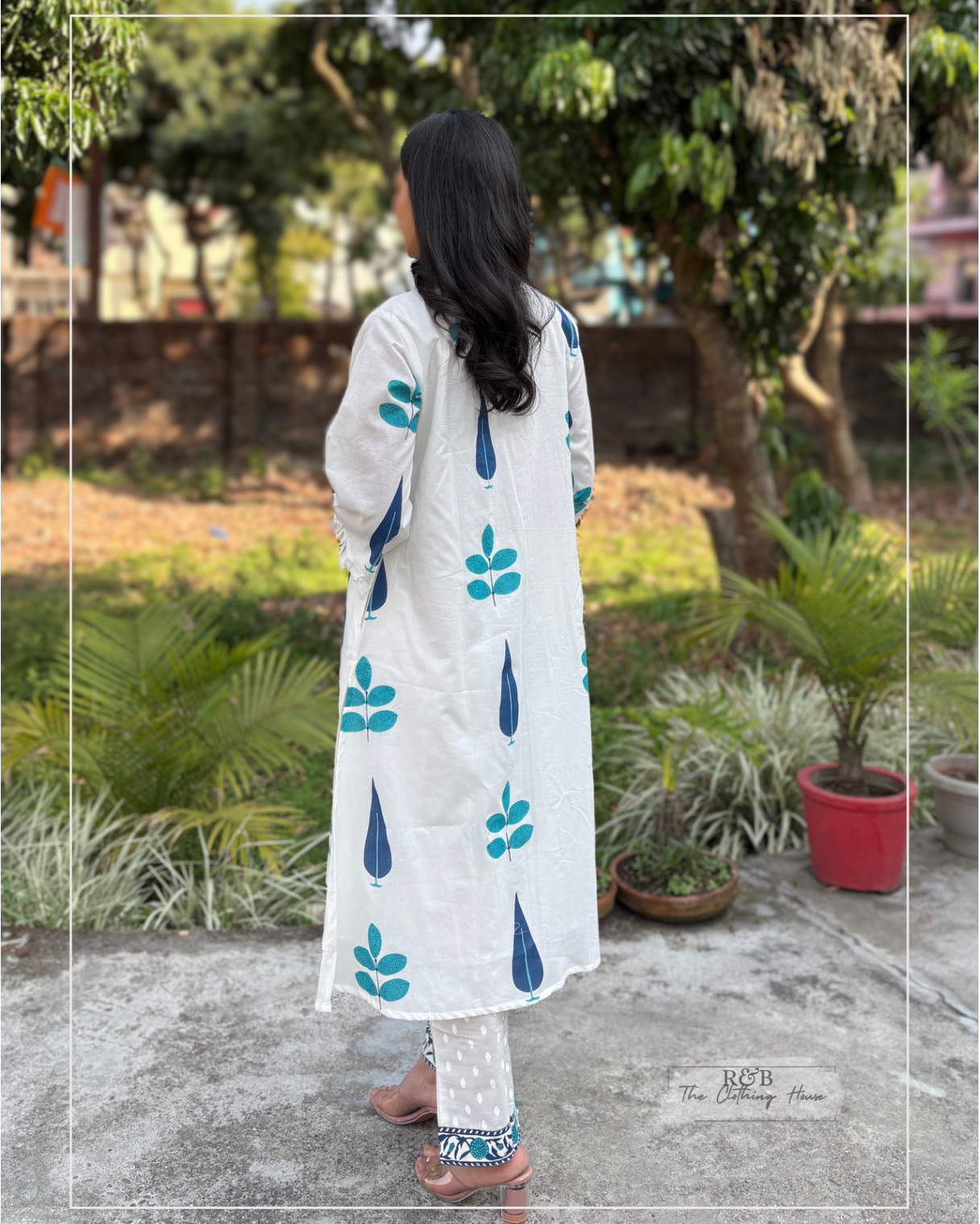 + Free ShippingThis kurta pant set has side pockets, and is paired with matching cotton pants. It is Stylish, comfy, and functional.